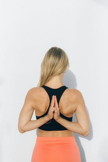 Using props like foam rollers, massage balls, and resistance bands can enhance the effectiveness of upper back stretches. A foam roller can target tight muscles, while a massage ball helps release tension in specific areas. Resistance bands provide gentle resistance, increasing the stretch’s intensity. These tools allow for deeper penetration into muscle tissue, improving flexibility and relaxation. Incorporating props into your routine can also make stretches more engaging and varied. For example, using a towel or strap can assist in reaching further or maintaining proper form. By leveraging these accessories, individuals can achieve a more thorough and satisfying stretch, addressing stubborn areas of tension in the upper back. This approach is particularly beneficial for those seeking advanced techniques to enhance their stretching practice.